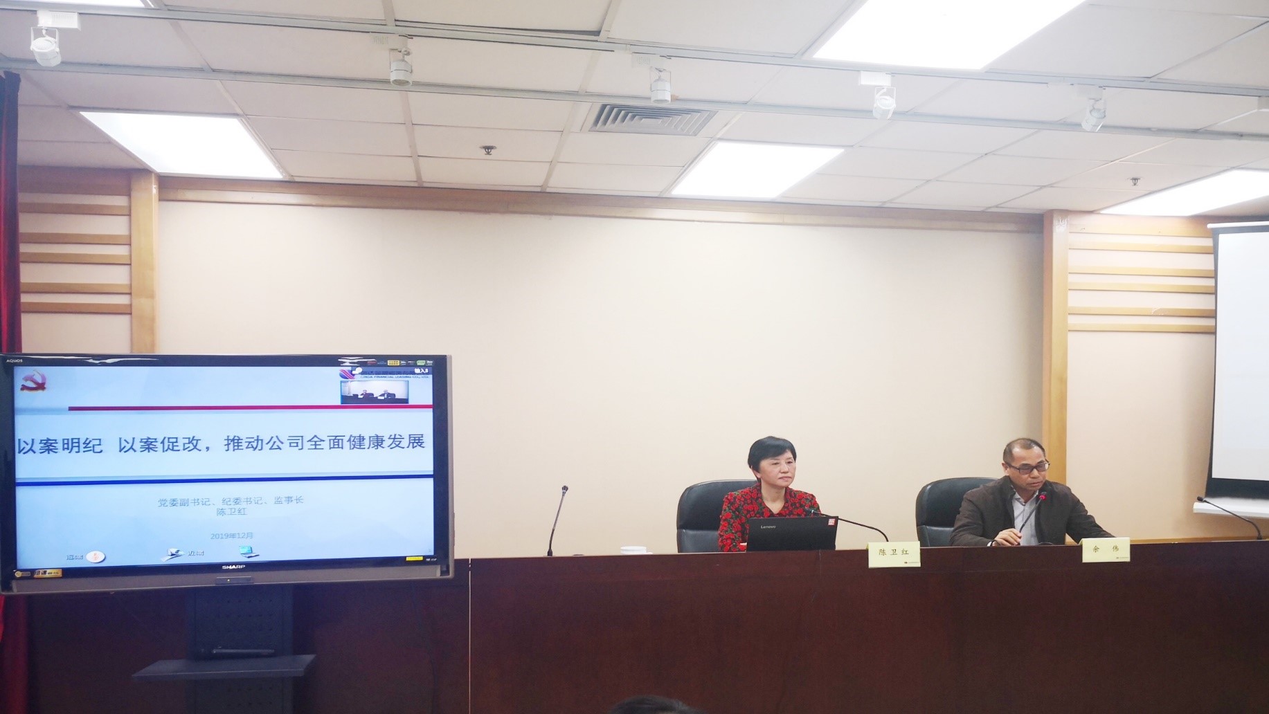為筑牢廣大干部員工拒腐防變的思想道德防線,提高廉潔從業的自覺性,12月23日,公司組織開展了2019年紀委書記講廉潔教育課活動。公司黨委書記余偉主持活動,紀委書記陳衛紅以《以案明紀以案促改,推動公司全面健康發展》為主題,為全體干部員工上了一堂生動的廉潔教育課。